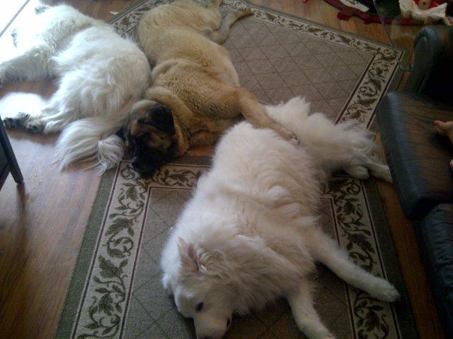I've attached some photos for you with more to come and will certainly keep you posted on his progress. Harry has taken a bit of a shine to my oldest Pyr (also a rescue) and she to him. It seems that whenever we are together they are touching whether paw to paw or back to back as they sleep.